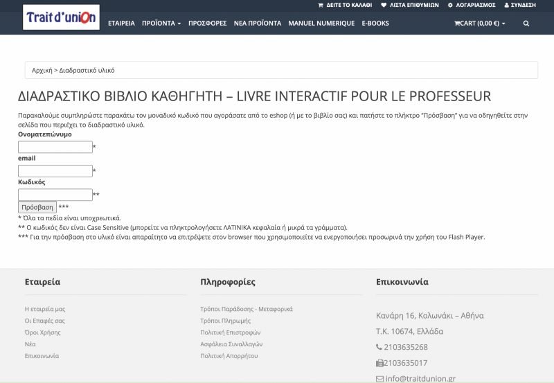 Η διαδικασία χρήσης του κωδικού online είναι πάρα πολύ απλή και το μόνο που χρειάζεται είναι να συμπληρώσει ο καθηγητής το ονοματεπώνυμο του, το email που έχει δώσει σε εμάς για την εγγραφή του ως καθηγητής, καθώς και τον κωδικό του manuel numérique που αγόρασε.